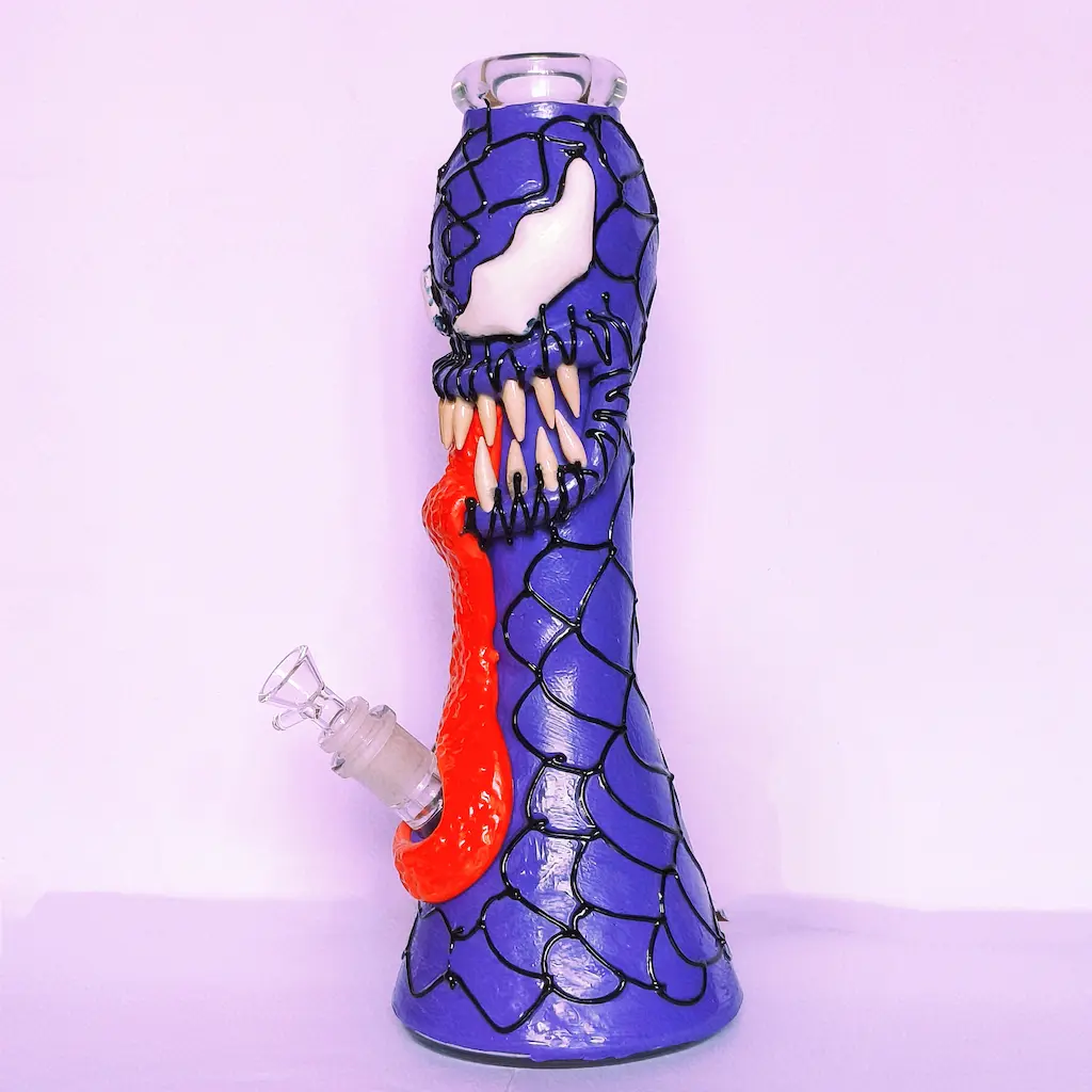 The Venom’s Fury 3D Monster Bong—a powerful piece inspired by Marvel’s iconic villain, Venom. This bong not only captures the raw, menacing essence of Venom but brings it to life with an astonishingly lifelike design. The gaping maw, sharp teeth, and sinister red tongue of Venom are rendered in stunning detail, making this bong more than just a smoking accessory; it’s a wild, powerful work of art.