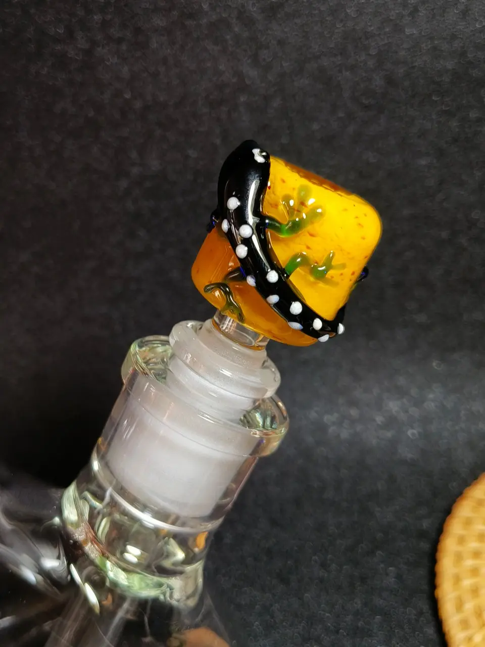Bring a bold touch of nature to your setup with this 14mm Gecko Glass Bowl, a stunning blend of function and art. Handcrafted with lifelike reptile detail, this bowl turns a simple accessory into a wild, collectible statement piece.