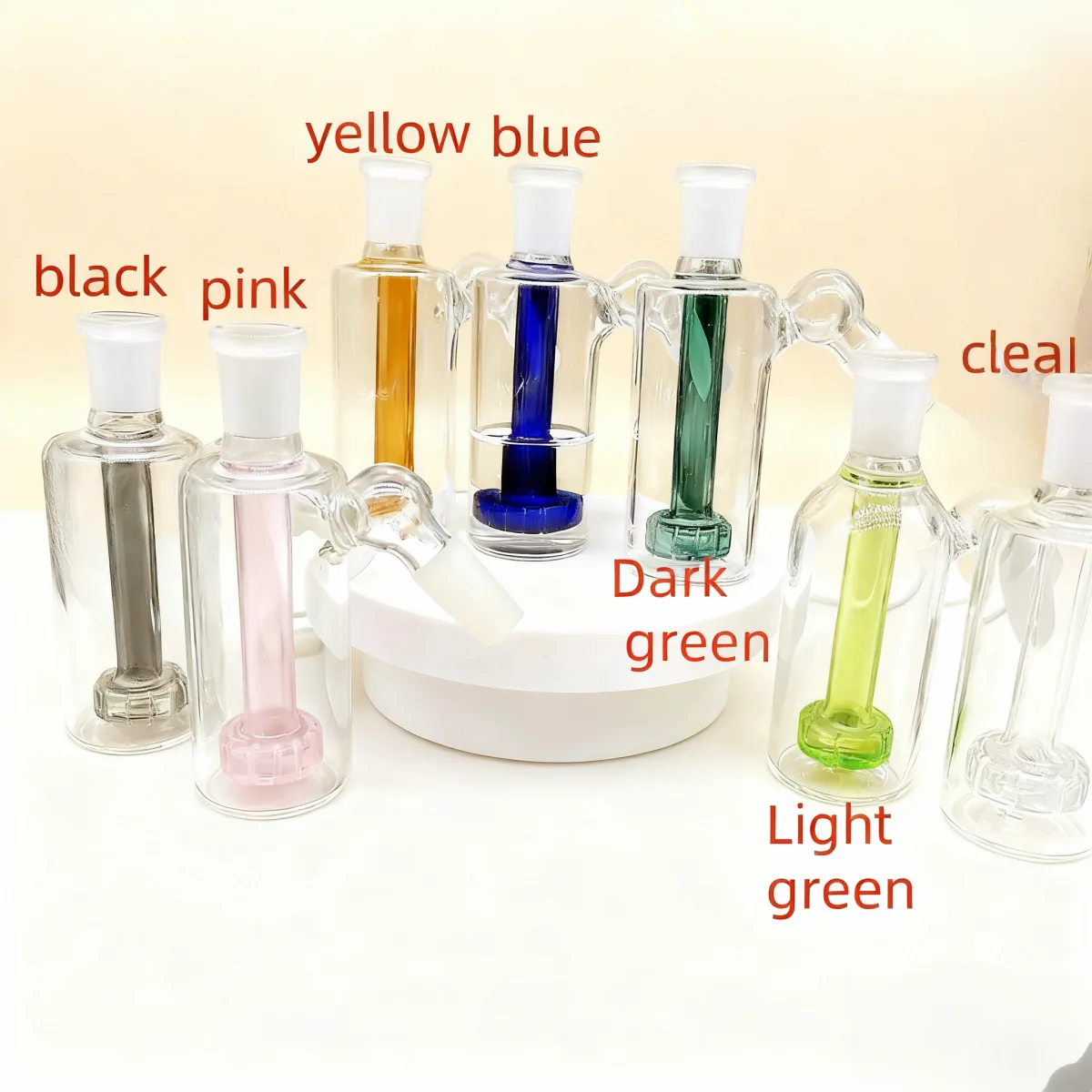 This ash catcher includes a clear glass body paired with color-accented downstem and perc, adding a pop of style without clashing with your setup. The 14.5mm male to female joint and 45° angle make it compatible with most bongs.