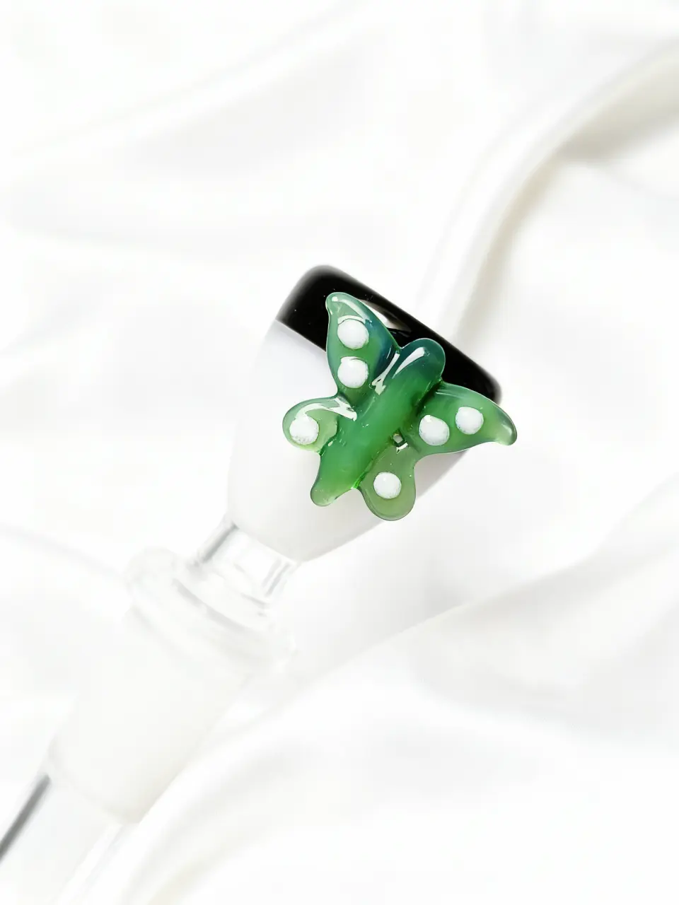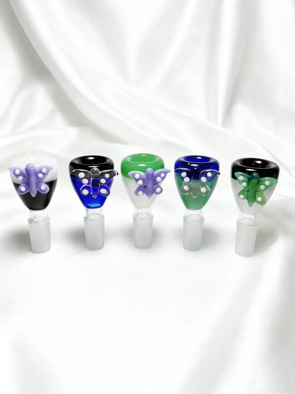 Bring a touch of magic and artistry to your water filtration setup with the Iridescent Butterfly 14mm Glass Bowl Series. Each piece transforms a practical accessory into a tiny work of art, featuring a detailed 3D butterfly as the centerpiece. The layered, vibrant colors and whimsical designs make every bowl feel alive and unique.