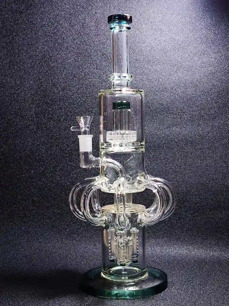 - Recycler Chamber: Eight elegantly curved arms form a closed-loop recycler system. Here, water and smoke swirl dramatically, creating a mini-tornado effect that not only looks stunning but also further cools and purifies each hit.