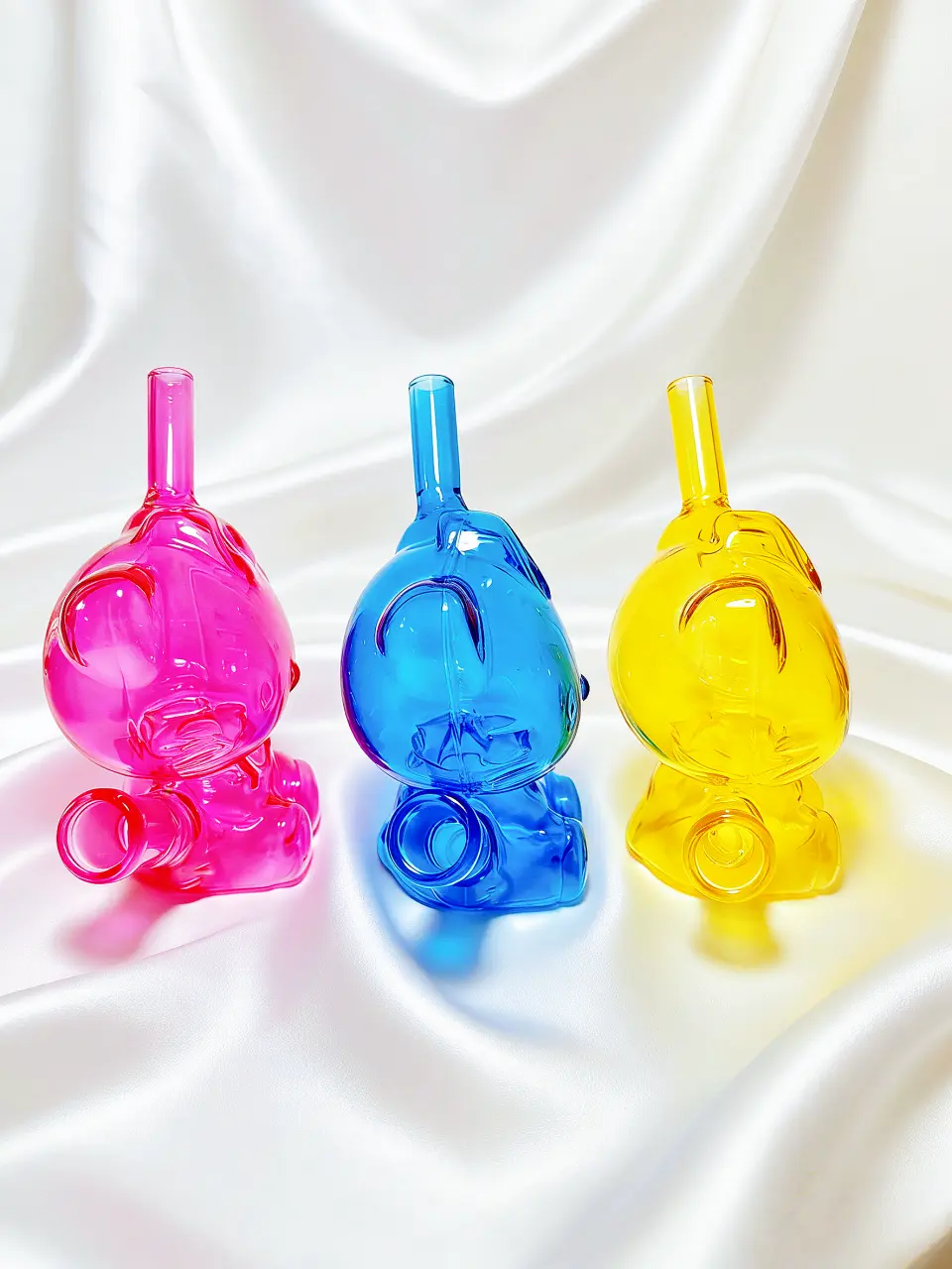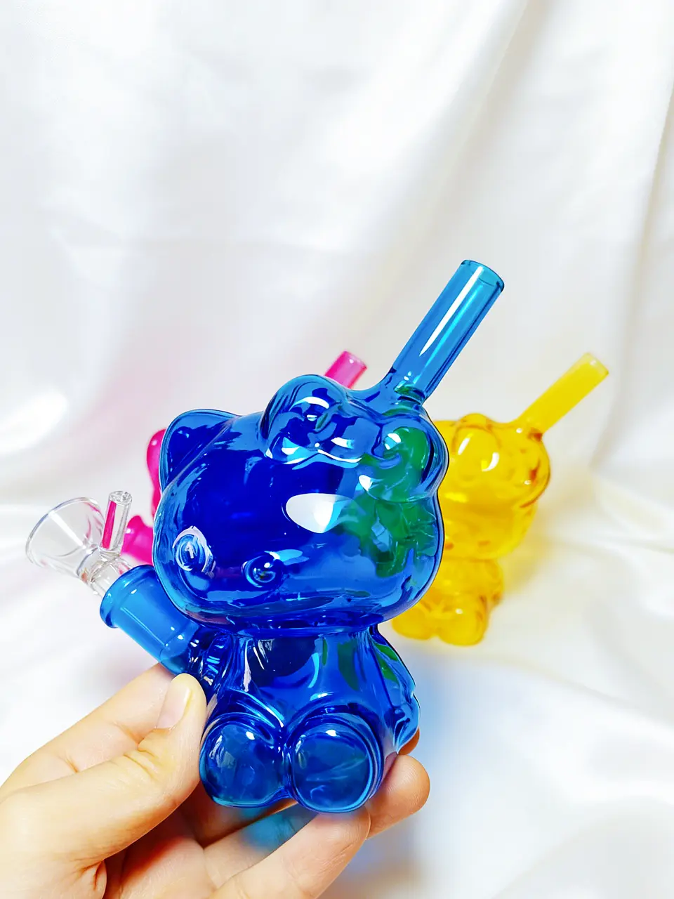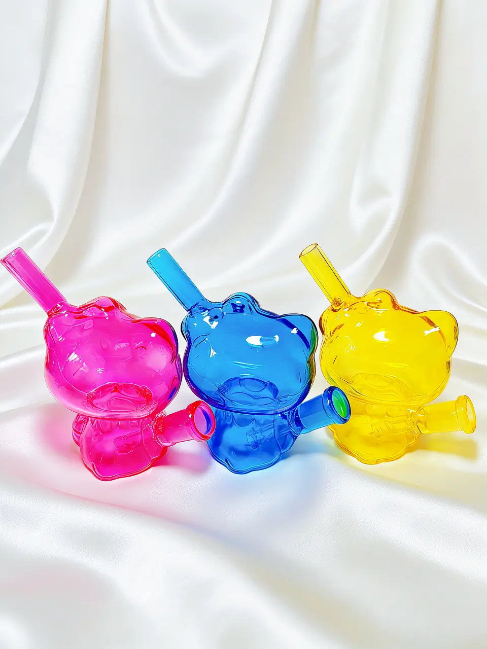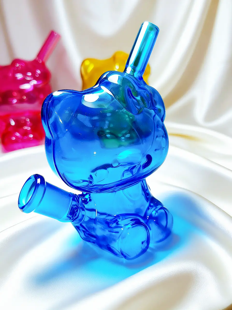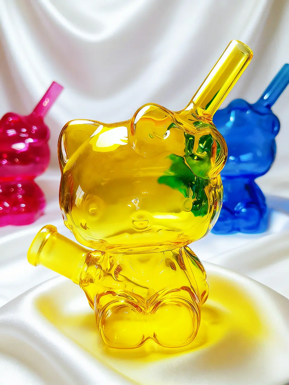 This 5-inch 3D Hello Kitty mini glass bubbler bong is bold, playful, and totally collectible. Hello Kitty sits in full 3D glory, finished in shiny electroplated colors like bright pink, electric yellow, and royal blue. The reflective finish catches the light, giving your space a futuristic, artsy vibe that’s hard to ignore.