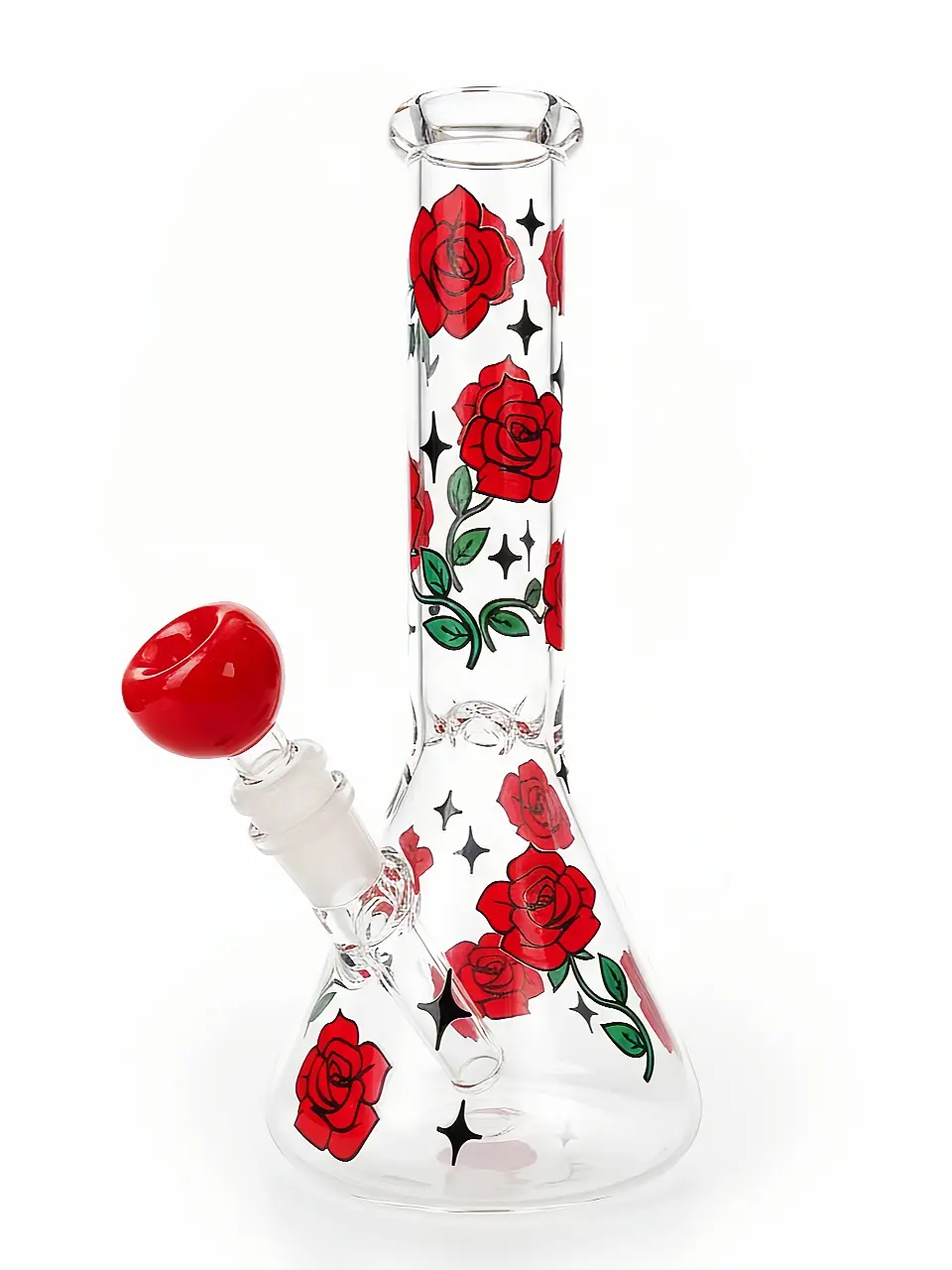 10" Classic Red Rose Beaker Glass Bong