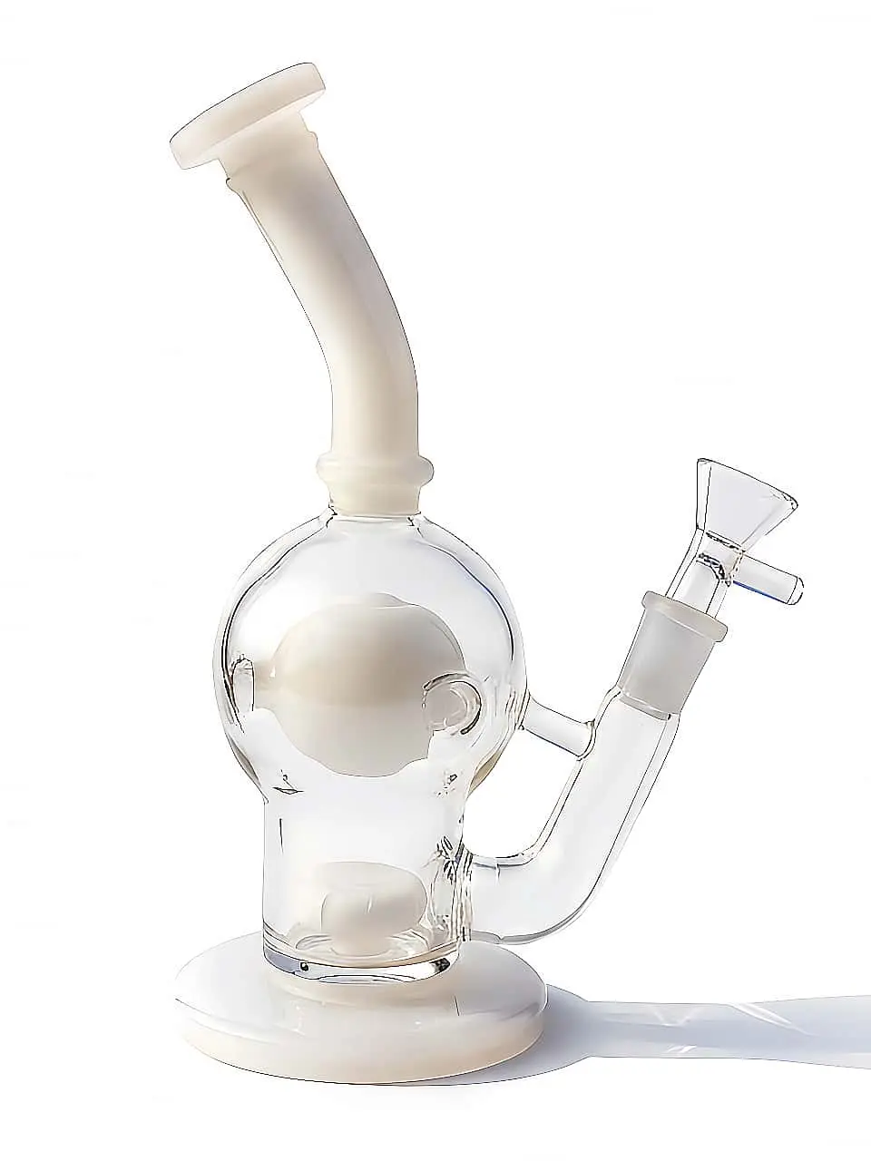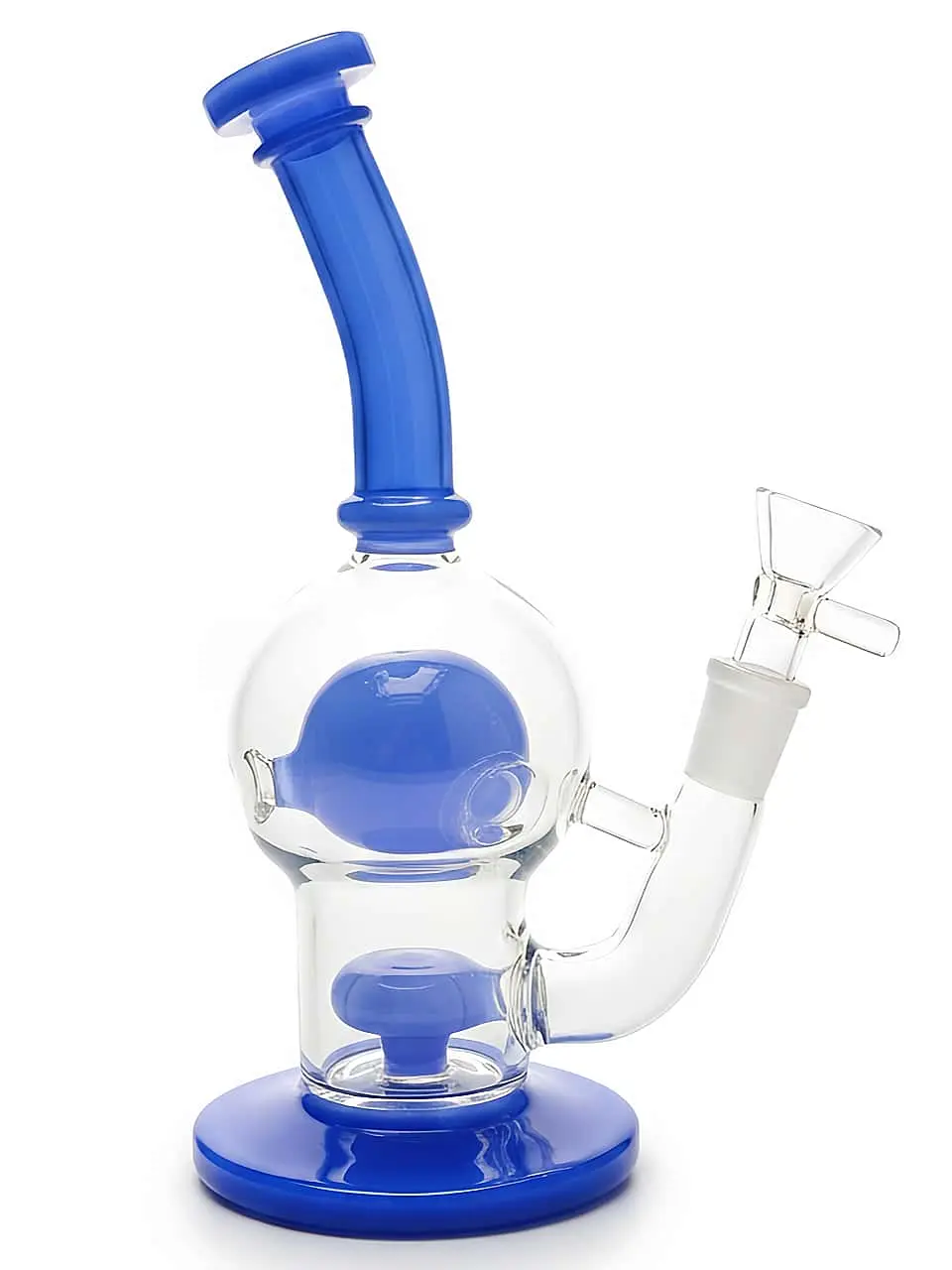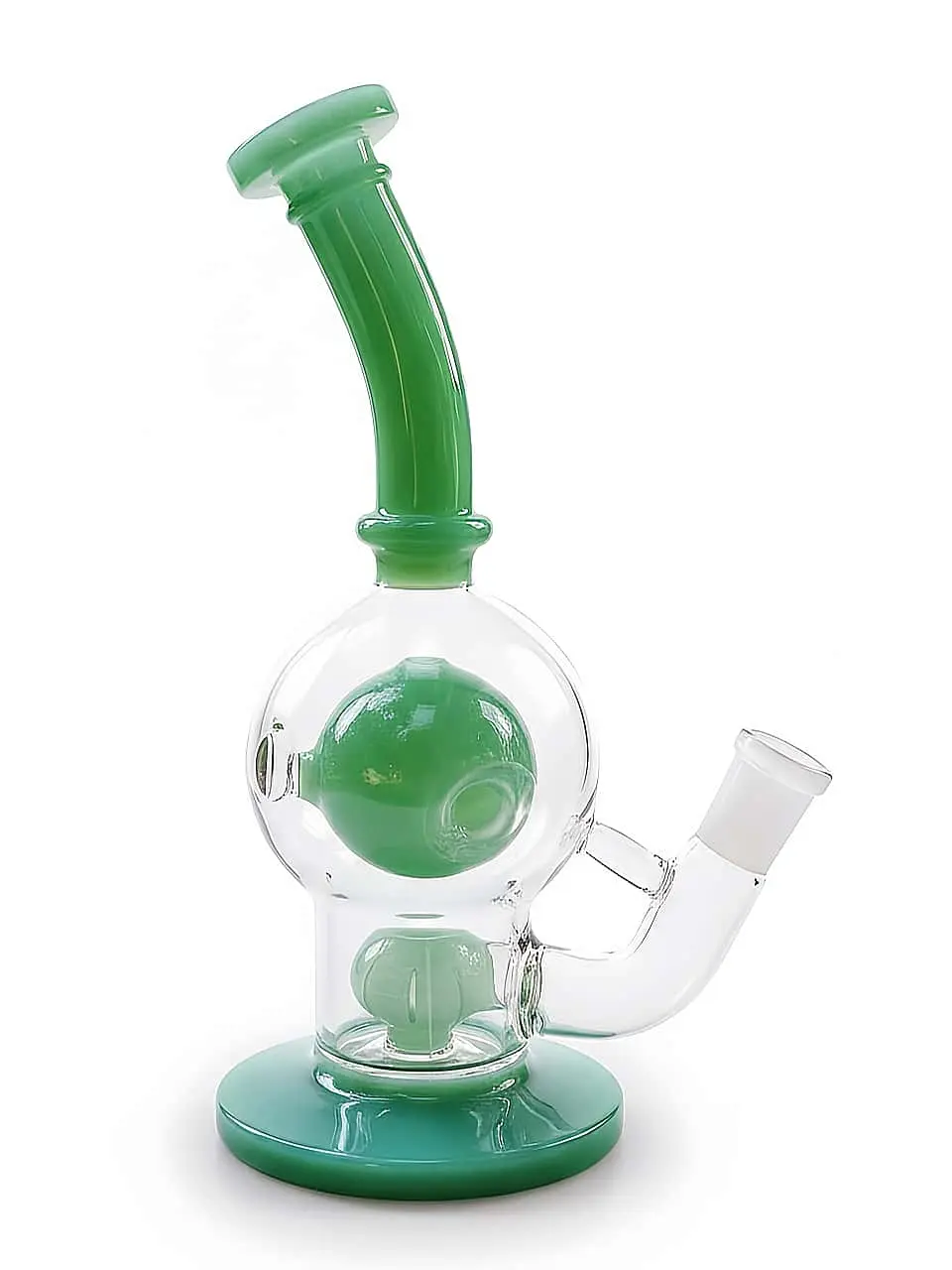 The star of the show? That round bubble chamber in the middle! It’s like a mini disco for your smoke — smooth hits, fun to watch, and totally satisfying. The bottom features a showerhead perc while the top rocks a Swiss perc, making every puff extra smooth. The curved bent neck keeps everything comfy while you puff away, no neck cramps here.