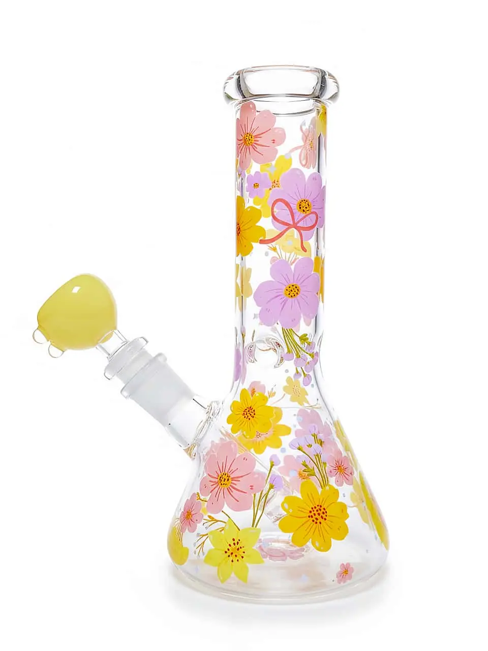 Bring a little garden magic to your smoke sessions! This bong features sunflowers, cherry blossoms, and tiny lilac blooms dancing across crystal-clear glass. Every detail feels like a tiny secret garden you can hold in your hands.