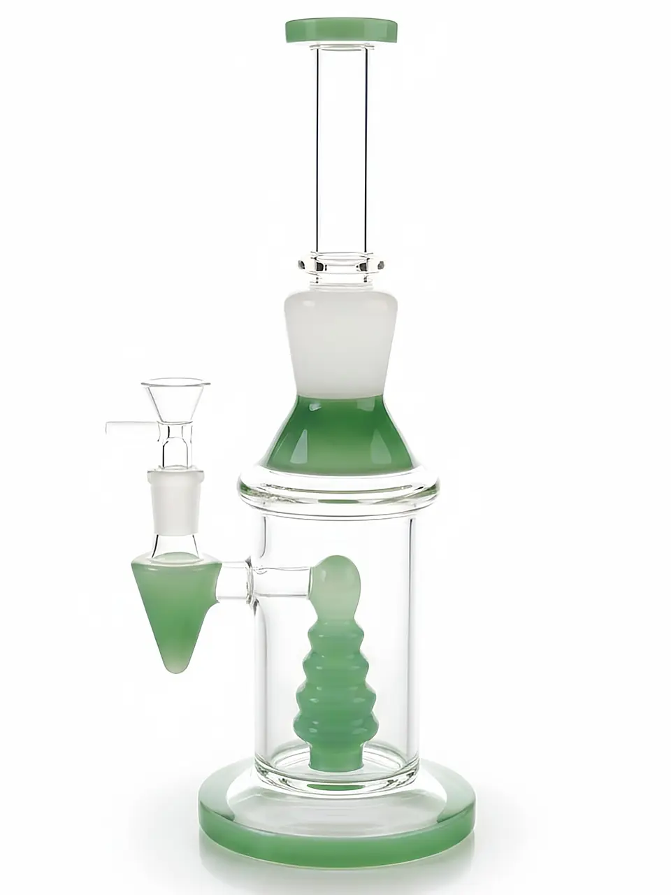 Standing 10 inches tall, this is a straight-tube bong built for smooth, no-fuss sessions. Smoke flows straight down into the layered pagoda perc. You get solid cooling, steady airflow, and a hit that feels clean without losing punch.