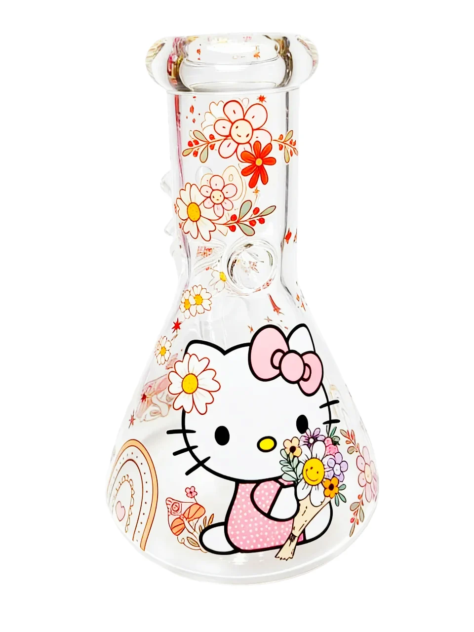 8″ 5mm Hello Kitty Bouquet & Rainbow Beaker Glass Bong