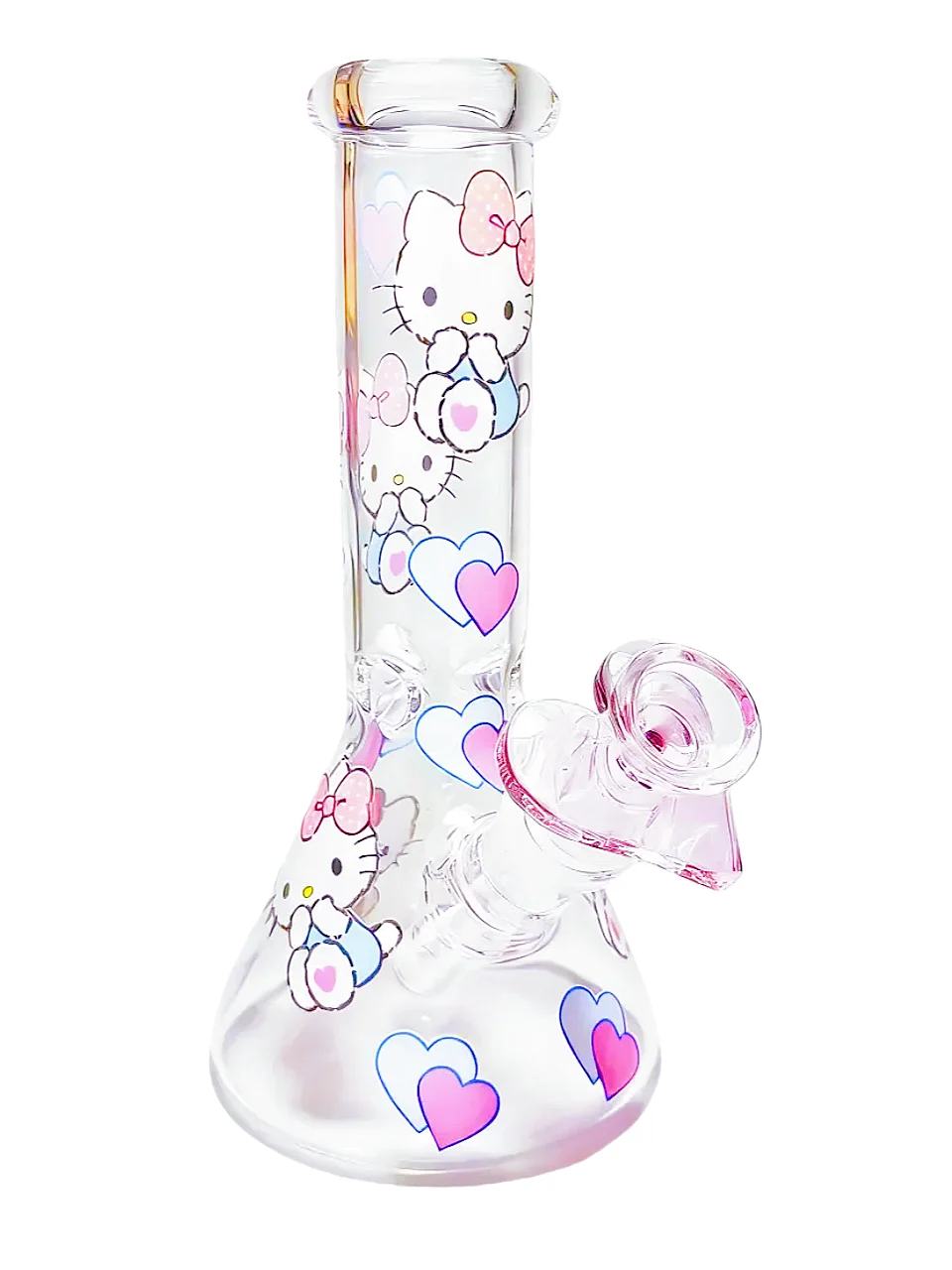 8" Hello Kitty Icy First Love Blue & Pink Beaker Glass Bong