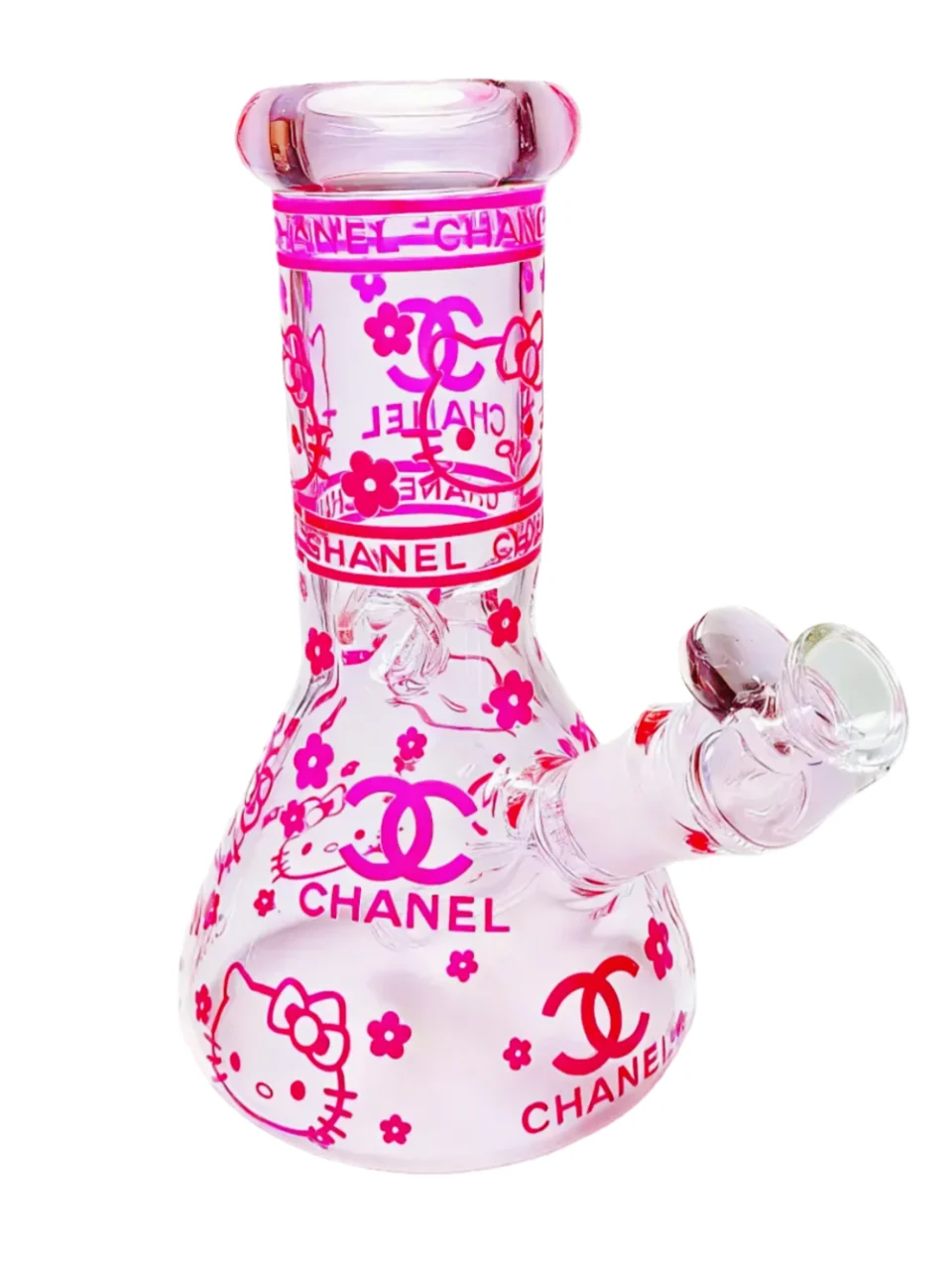 8" 5mm Hello Kitty x Chanel Pink Beaker Glass Bong