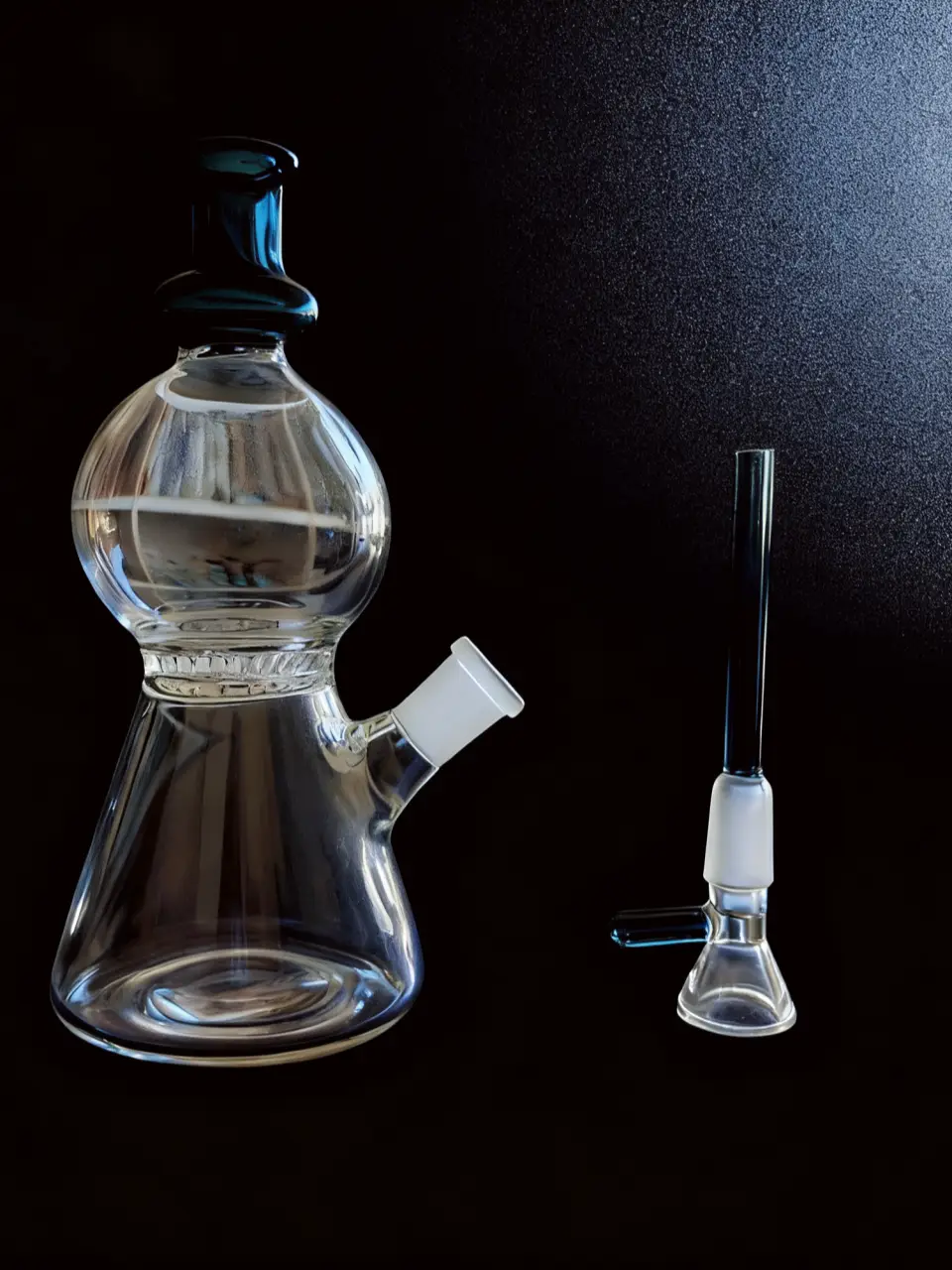 Say hello to your new 7-inch glass buddy — compact, sturdy, and seriously cool. This hourglass-shaped bong is small enough to handle but big on style.
