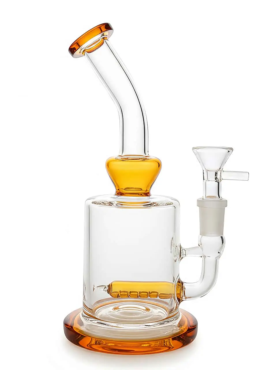 This bong is proof that less really can be more. The look is clean and modern, with a crystal-clear body that puts everything on display. Front and center is the horizontal inline percolator, stretched cleanly across the base like a piece of lab art. Add subtle color accents at the perc, neck, and base, and you’ve got a setup that feels calm, precise, and quietly cool.
