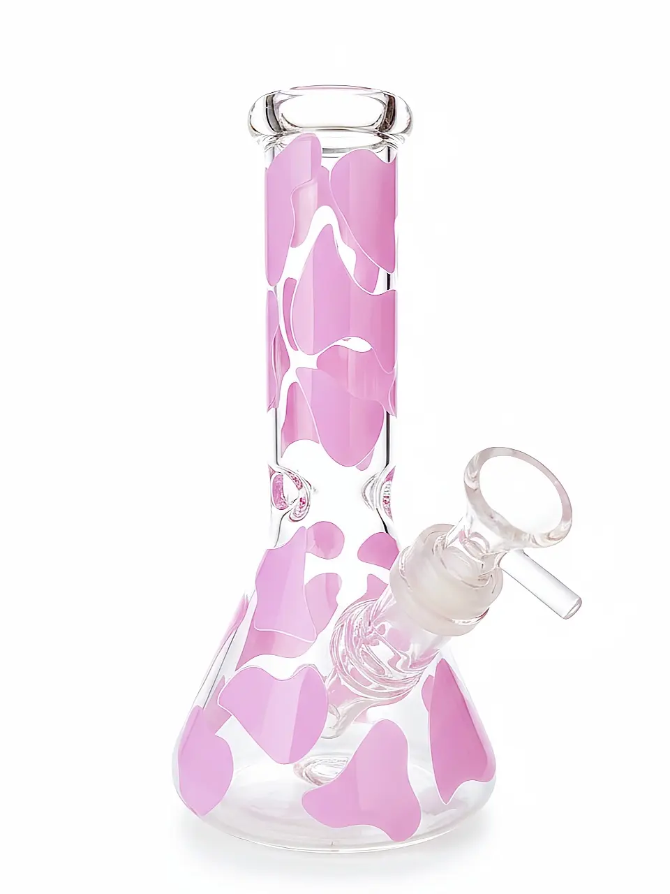 Soft, dreamy, and instantly calming. This bong is wrapped in gentle lavender cow spots, giving it a sweet, pastel look that feels light and relaxing. Cute without being loud, playful without feeling childish. The lavender cow print design adds a soft pop of color that stands out in the most calming way.