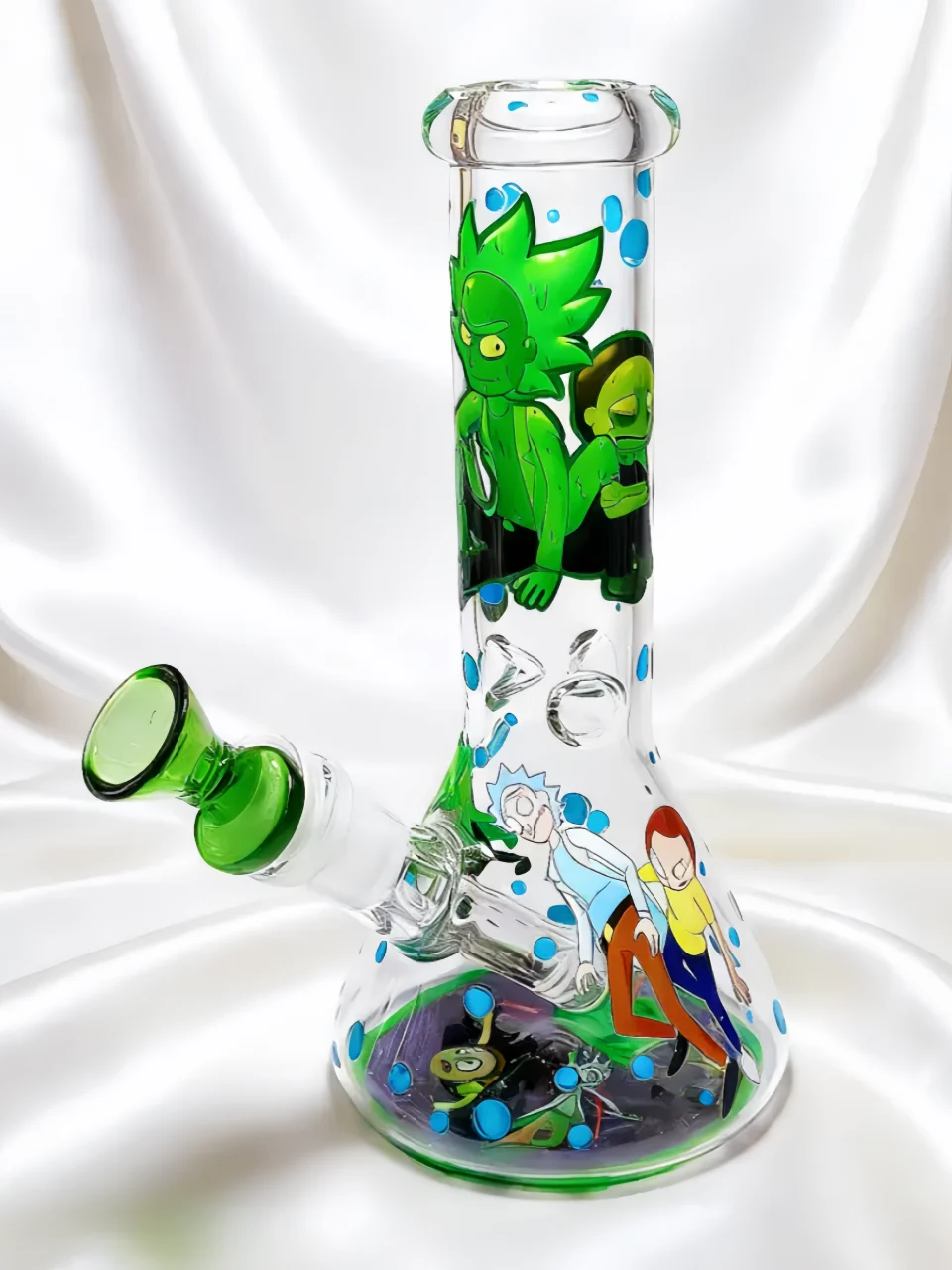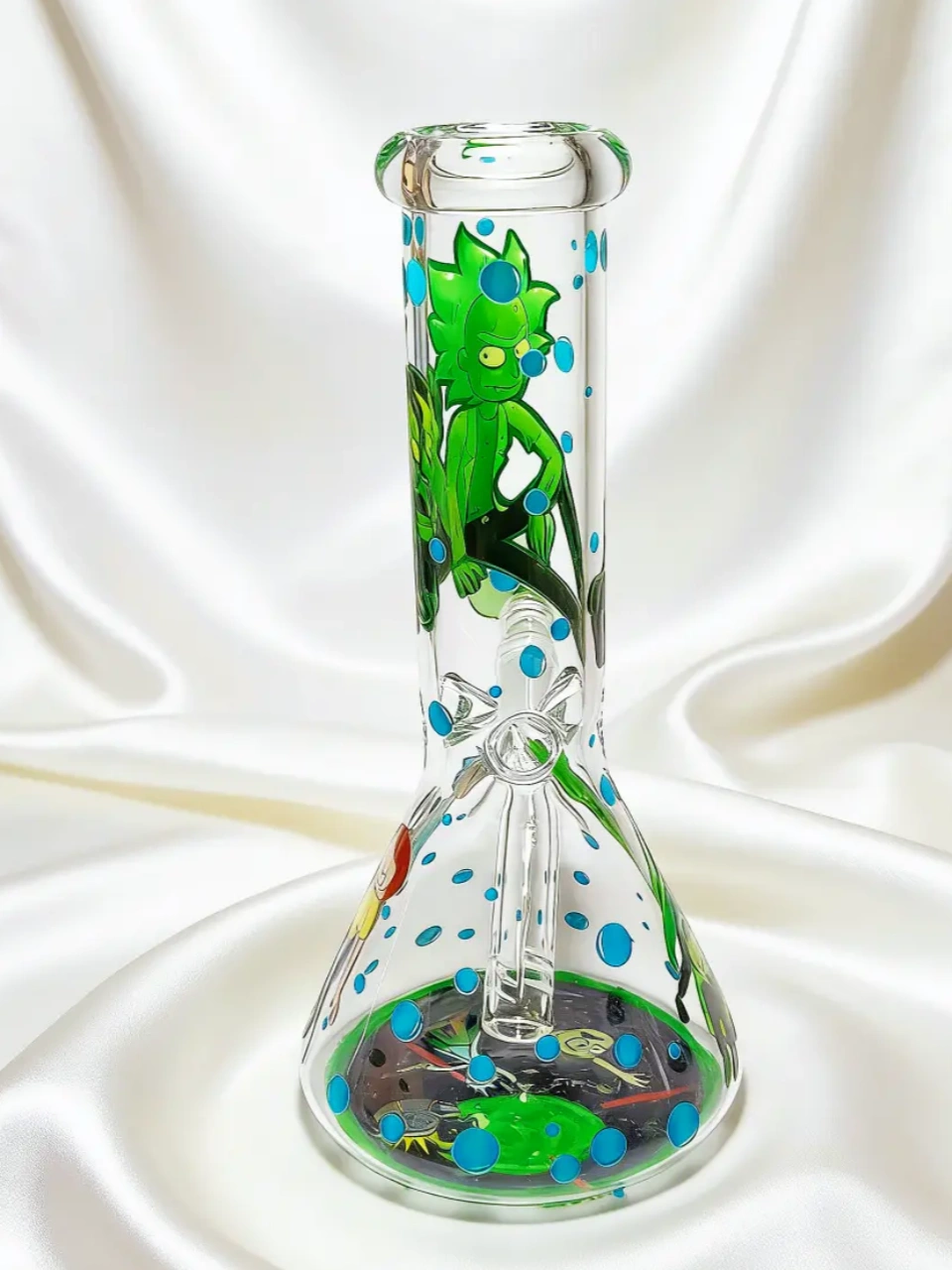 At 8 inches tall, this bong keeps things compact but impactful. The beaker-style base gives it that classic lab-equipment look while staying stable on any surface. Easy to handle. Easy to display. It feels like something Rick would casually leave on his workbench between experiments.