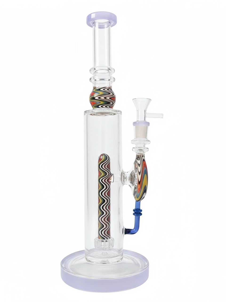 Its bold straight-tube silhouette delivers strong, direct pulls, while the slitted showerhead perc hidden inside the colorful wig wag marble chamber diffuses smoke through water—giving you cleaner, smoother, and cooler hits every time. The wide circular base offers excellent stability, and the reinforced fixed downstem ensures long-term reliability.