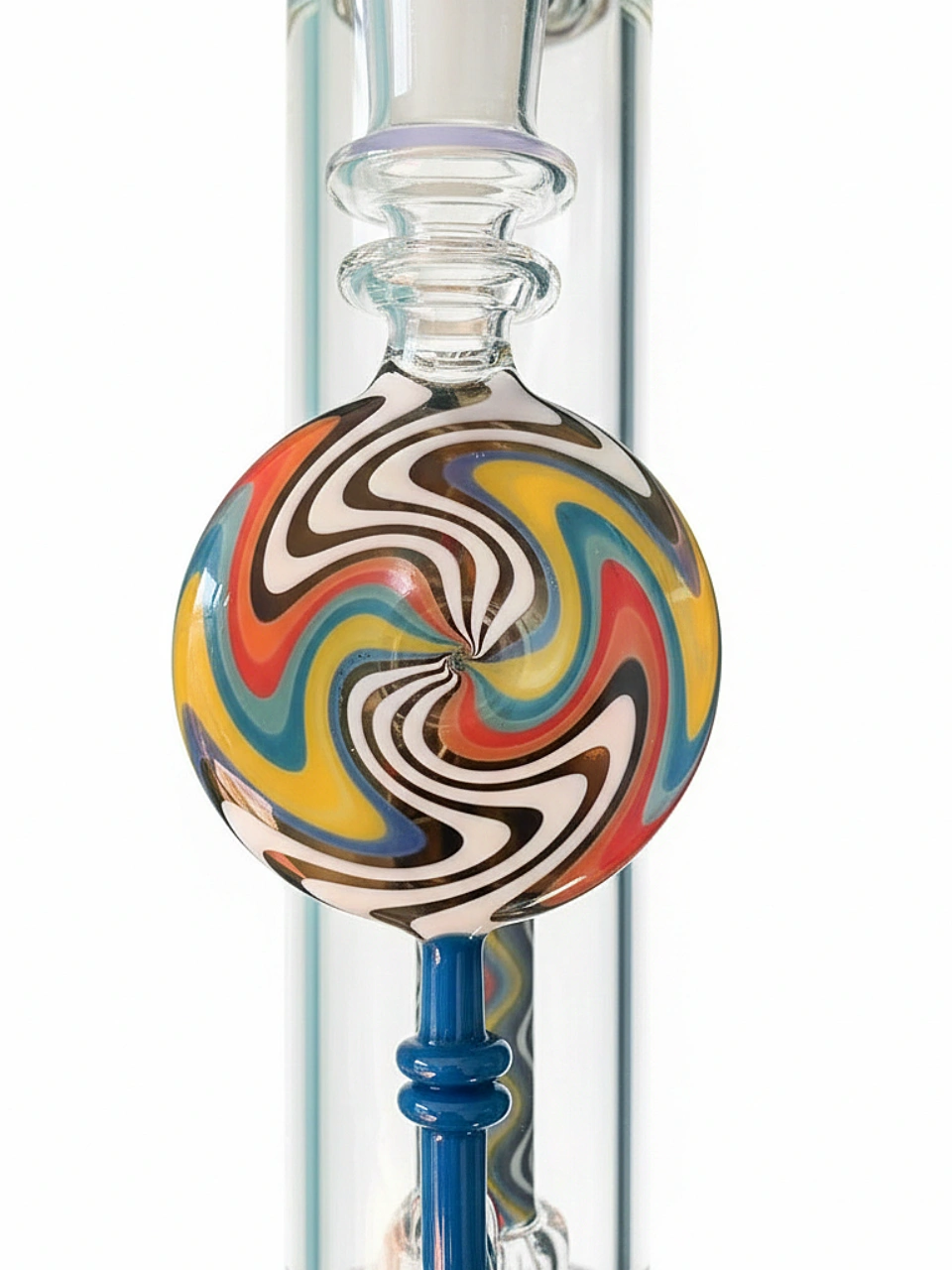 Accented throughout with swirling wig wag patterns and soft-colored glass, this bong doesn’t just work beautifully—it looks like a showpiece. The comfortable rimmed mouthpiece and twin Maria rings on the neck add both grip and style, making each session feel elevated and effortless.