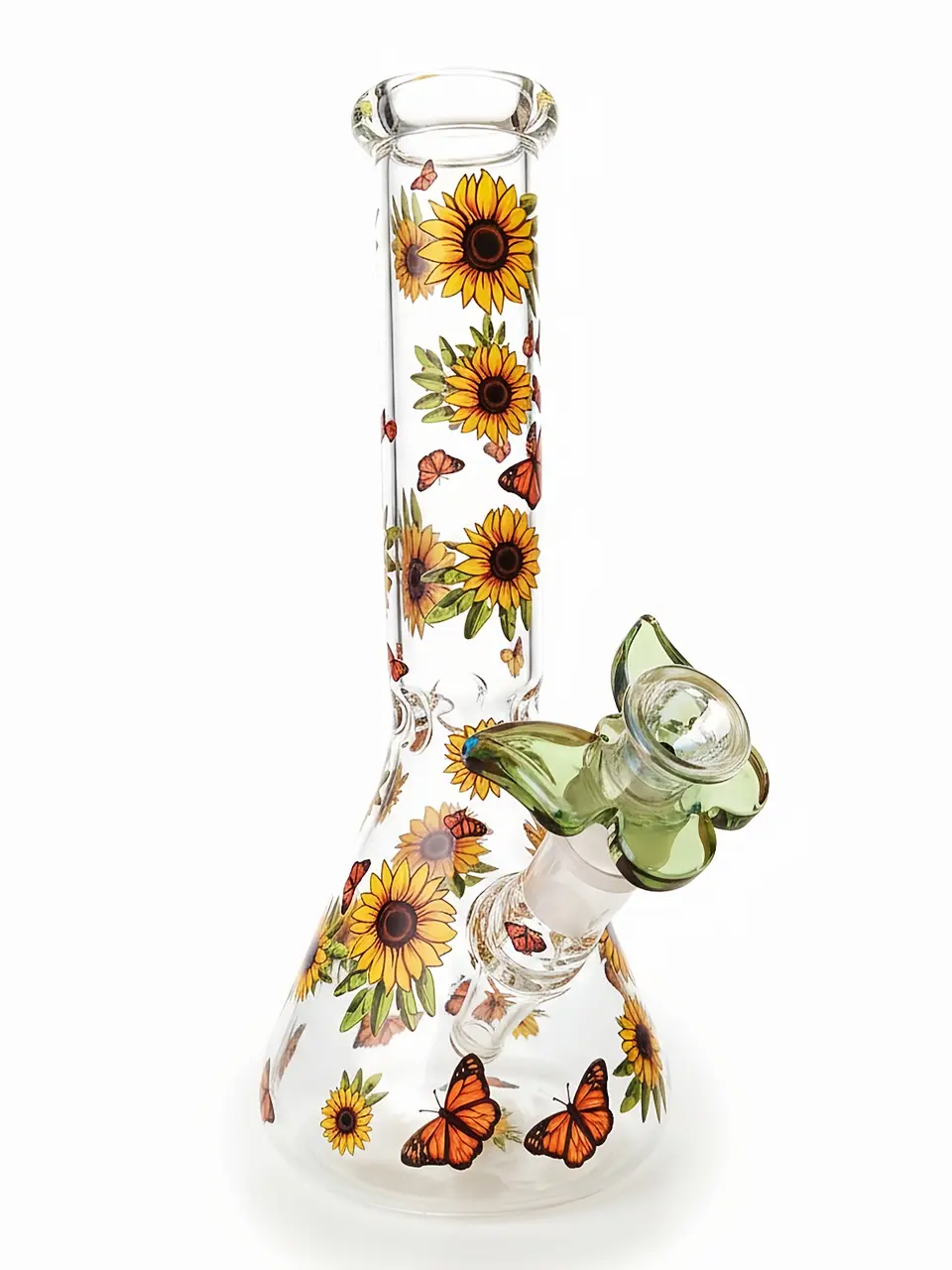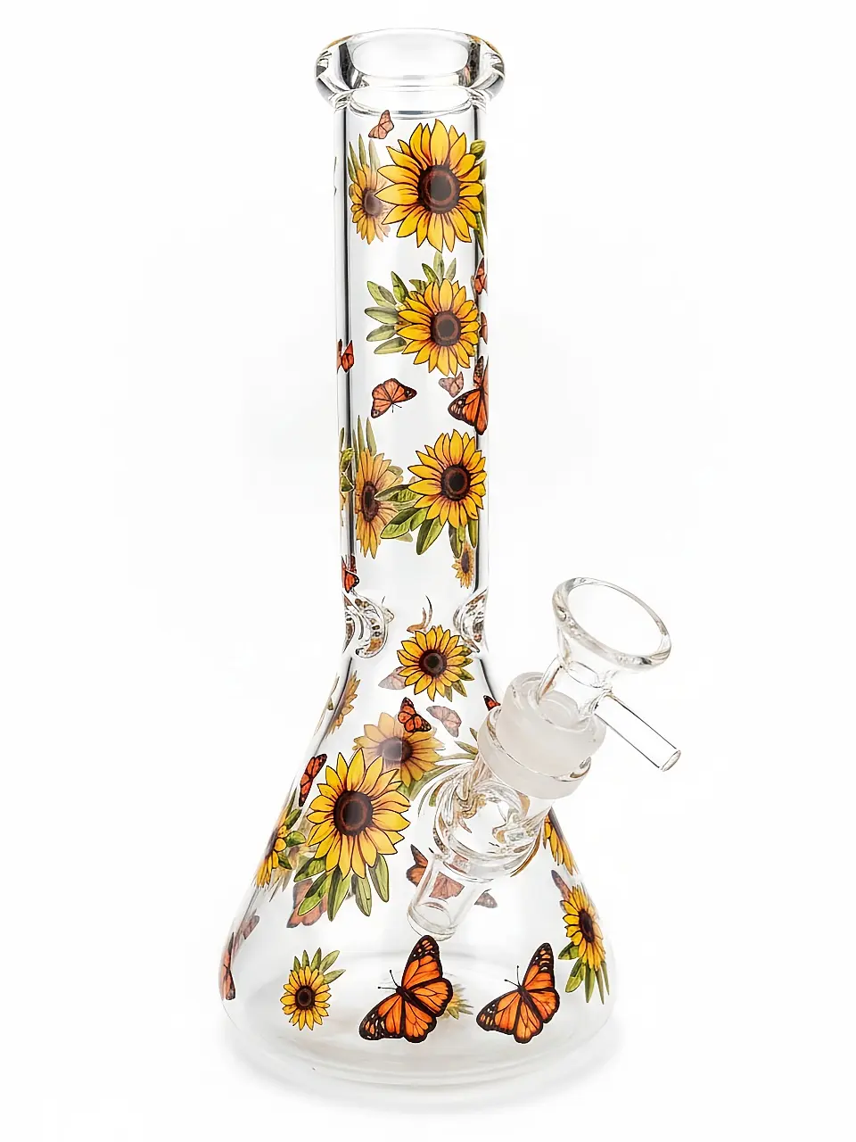10″ Sunflower & Butterfly Autumn Garden Beaker Glass Bong