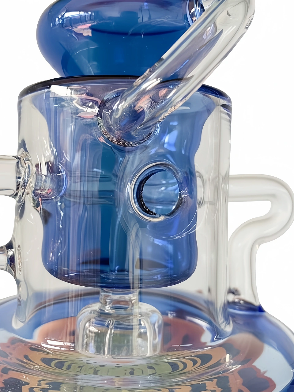 At the heart of its design is a disc percolator, which breaks vapor into fine bubbles for enhanced diffusion and cleaner hits. Above it, an integrated recycler system continuously circulates water, further cooling the vapor while filtering out impurities—resulting in exceptionally smooth and flavorful draws.