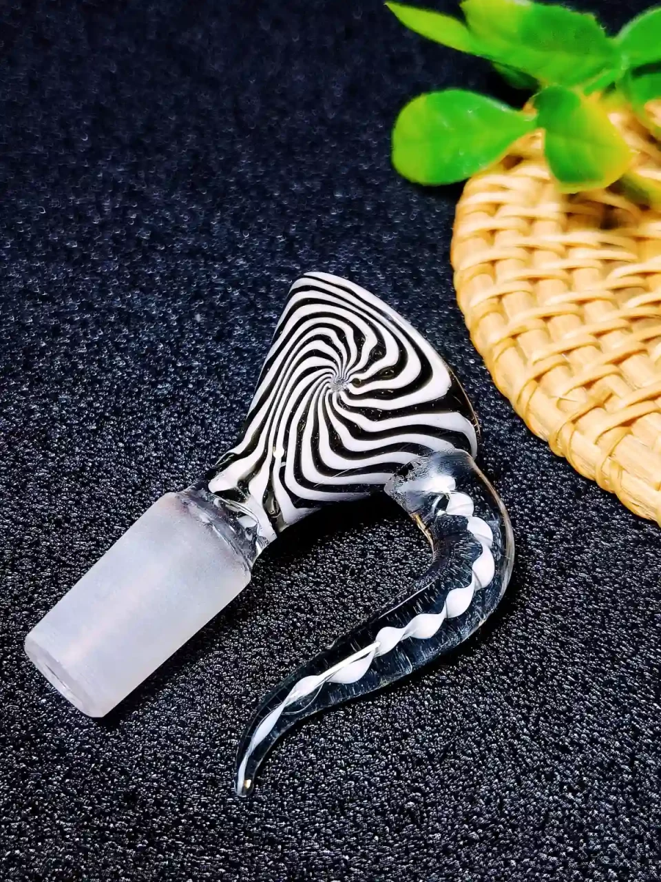 14mm Zebra Swirl Bong Bowl with Spiral Horn Handle